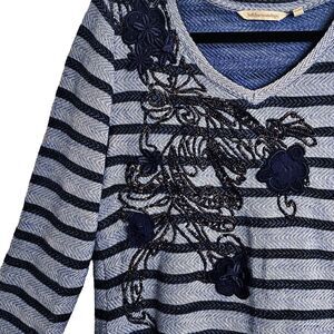 Soft Surroundings Syrah Tunic Sweater Size L Navy Stripe Embroidered Appliqué