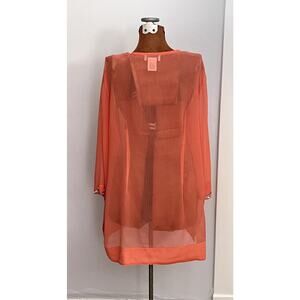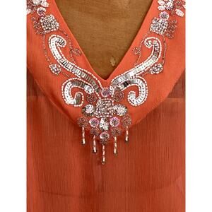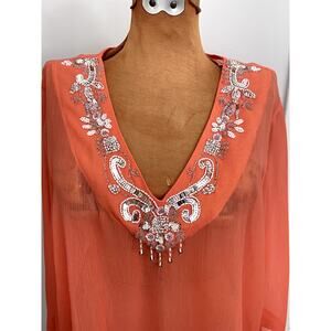 Soft Surroundings Sz L Embellished TunicTop Orange Sheer Boho Cruise Coastal