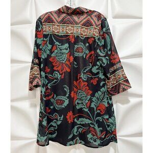 Soft Surroundings Sz M Black Tribal iKat Print Button Up Tunic Top Topper Jacket