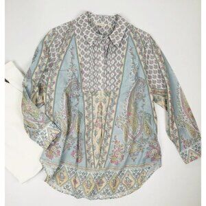 Soft Surroundings Sz M Floral Paisley Print Pintuck Pleated Blouse Popover Top