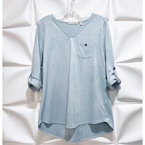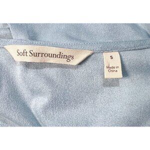 Soft Surroundings Sz S Blue Faux Suede Leather Tunic Top Blouse V Neck Roll Tab