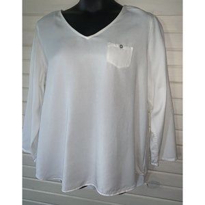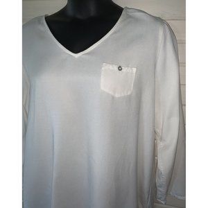 Soft Surroundings Sz ?? Tencel Tunic II V-Neck White Blouse Roll Tab Sleeves EUC