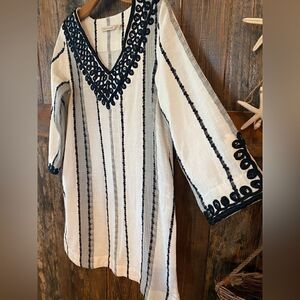 Soft Surroundings Sz XS Blk Coco De Mer Embroidered V-Neck Boho Tunic Dress