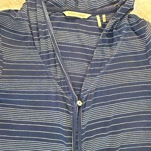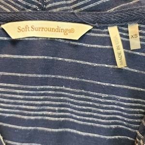 Soft Surroundings Sz XS Hooded Nautical Striped Navy Cardigan Cotton Blend