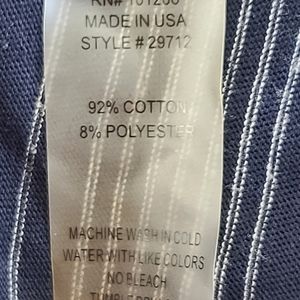 Cotton/poly blend in a navy blue nautical stripe