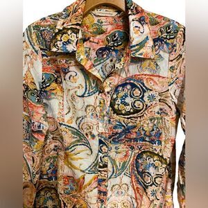 Soft Surroundings Sz XS Soft Multicolor Classic Button Down Collar LS Shirt