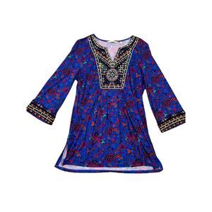 Soft Surroundings Tamuri Tunic, Women's XS Beaded Vibrant Hippie Boho Fun