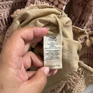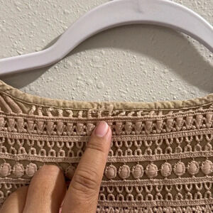 Soft Surroundings Tan Adelita Lace V-neck Blouse Tassel Eyelet Bell Sleeve Small