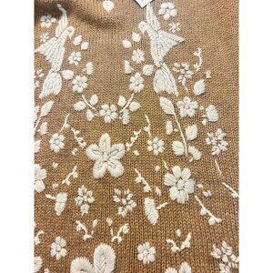 Soft Surroundings Tan Embroidered Knit Sweater NWT Floral Bird Design XS