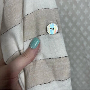 Soft Surroundings Tan White Striped Linen Boxy Top