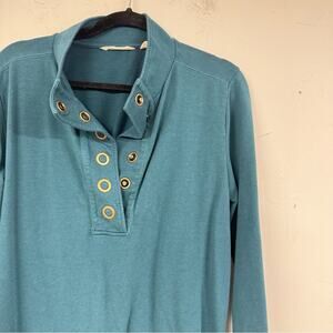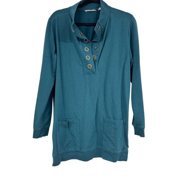 Soft Surroundings Teal Blue Snap Henley Tunic Top Long Sleeve Sweater M