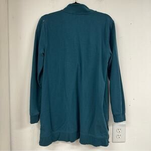 Soft Surroundings Teal Blue Snap Henley Tunic Top Long Sleeve Sweater Womens M