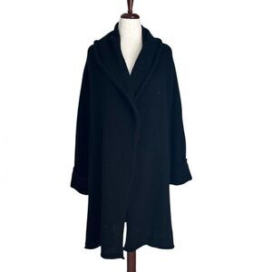Cozy and elegant black knit coat from Soft Surroundings, featuring a relaxed, draped silhouette and shawl collar. Crafted with a luxurious mohair and wool blend, this versatile piece can be worn as a coat or oversized cardigan — perfect for layering during cooler months.