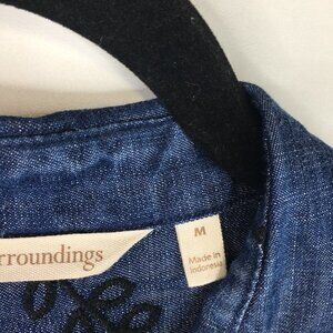 Soft Surroundings Tencel Blue Embroidered Floral Button Down Top Size M