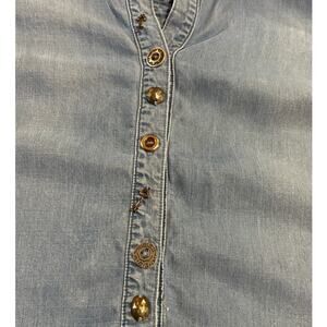 Soft Surroundings Tencel Lyocell Chambray Button Front Denim Button Detail Roll-Tab Sleeve Shirt Plus Women’s Plus Size 3X