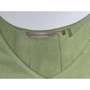 Soft Surroundings Tencel Tunic Top V-Neck Sage Green Long Roll Tab Sleeves Sz L