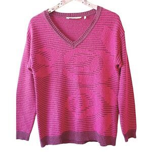 Soft Surroundings Textured Bell Flower Sweater Pink Ribbed Casual Jacquard Sz L