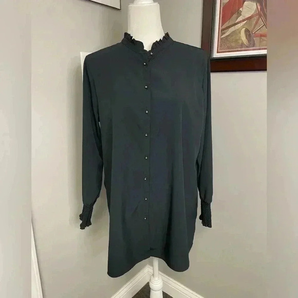 Soft Surroundings The Vivian Shirt Black long button down piecrust collar PLarge