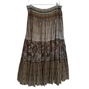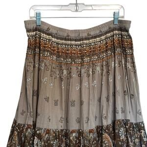 Soft Surroundings Tiered Beaded Maxi Skirt Womens Large Paisley Prairie Boho