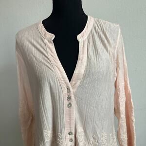 Soft Surroundings Top Large Blouse Floral Embroidered Linen Blend Cottagecore