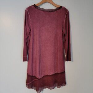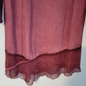 Soft Surroundings Oversiz Tunic Top Size S V-Neck Chiffon Trim Raspberry