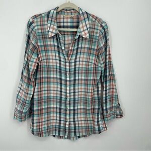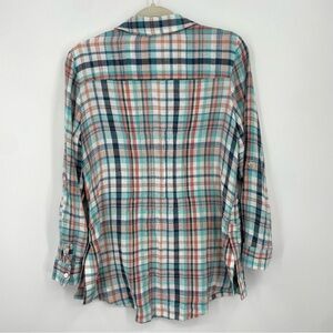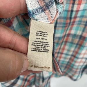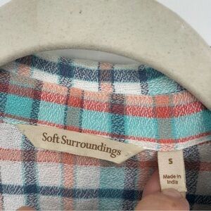 Soft Surroundings Top Sz S Plaid Colorful Tunic Button Down Emerson Summer