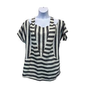 Soft Surroundings Top Wmns Medium Linen Blend Cold Shoulder Striped Blouse