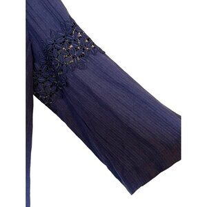 Soft Surroundings Top Women L Blue Boho Floral Old Money Preppy Classic Coastal