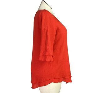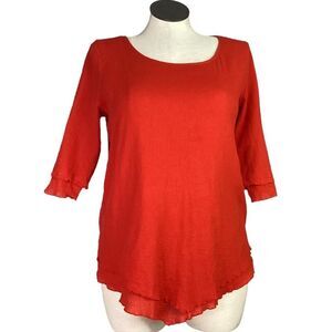 Soft Surroundings Top Women L Red Siesta Key Gauze Half Sleeve Layered Blouse