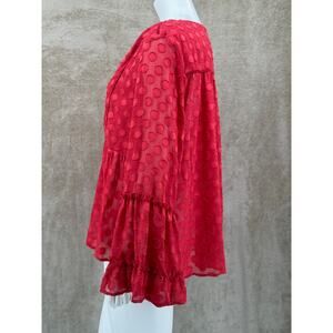 Soft Surroundings Top Womens Large Red Besito Tunic Polka Dot Sheer Ruffles Beaded Tassels Boho V-Neck Long Bell Sleeves Lined Pullover