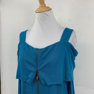 SOFT SURROUNDINGS TOP WOMEN M MEDIUM TEAL ZIP FRONT COLD SHOULDER LONG SLEEVE