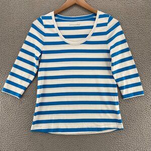 Soft Surroundings Top Women Small Blue Striped SoftEssential Supima 3/4 Sleeve
