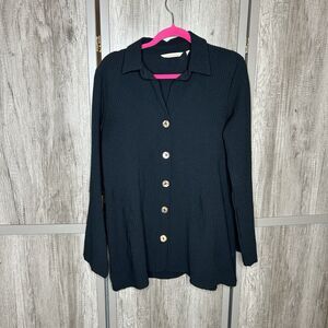 Soft Surroundings Top Women Small Button Down Lagenlook Roll Tab Sleeves Black