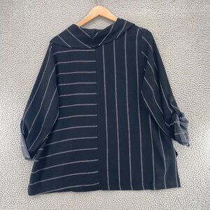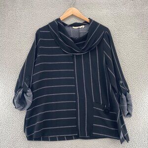 Soft Surroundings Top Womens 1X Plus Black Striped Cowl Neck Roll Tab Sleeves