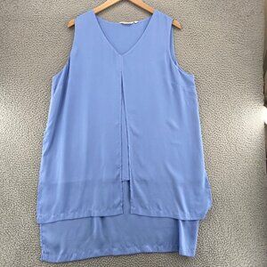 Soft Surroundings Top Womens 1X Plus Blue Layered Tunic Sleeveless V Neck Blouse