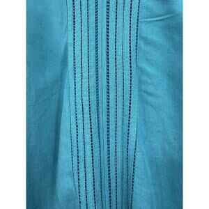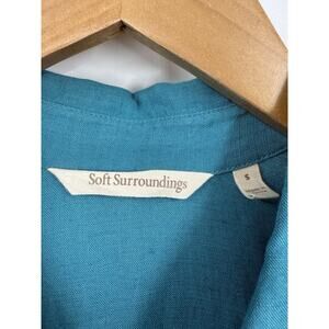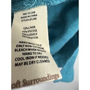 Soft Surroundings Top Womens Blue Linen Blend 3/4 Sleeve V Neck Shirt Size Small