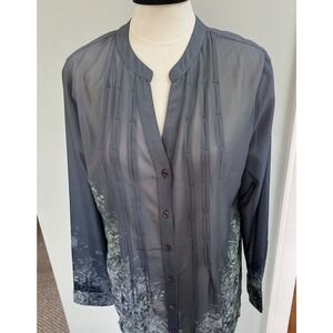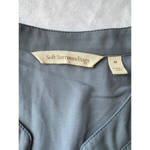Soft Surroundings Top Womens Gray Green Sheer Roll Tab Sleeve MED Oversized