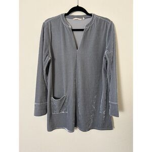 Soft Surroundings Top Women's L Emmaline Velvet Tunic V Neck Gray