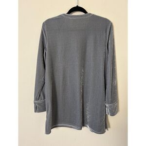 Soft Surroundings Emmaline silvery gray velvet v neck long sleeve top has side splits and one front pocket