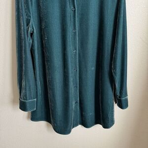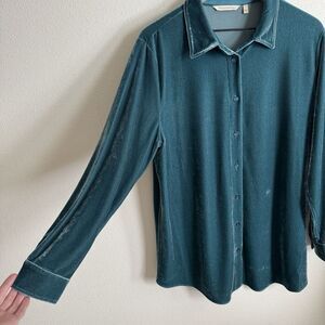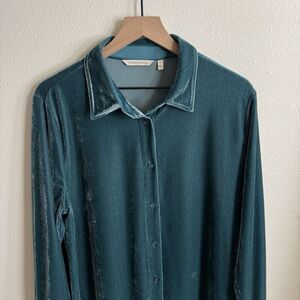 Soft Surroundings Top Womens Large Blue Velvet Button Up Stretch Comfort Artsy