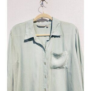 Soft Surroundings Top Womens Large Button Up Tunic Long Sleeve Mint Green 2DC26