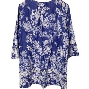 Soft Surroundings Top Women's Medium Peasant Pintuck Floral Embroidered Eyelet