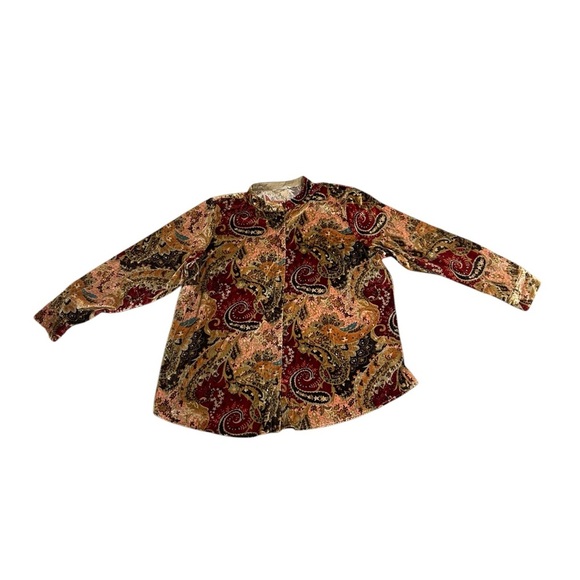 Soft Surroundings Top Womens Paisley Velour Long Sleeve Button Shirt Size 2X