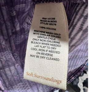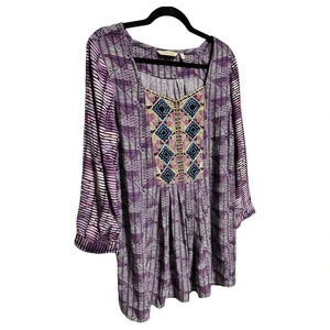 This Soft Surroundings blouse is perfect for any occasion. The beautiful purple color and embroidered sequin accents add a touch of elegance to this classic tunic style top. The lightweight and breathable viscose material makes it ideal for summer, fall, or spring.