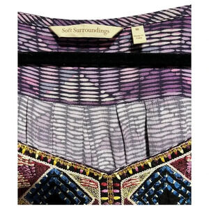 Soft Surroundings Top Womens Size Medium Purple Embroidered Sequin 3/4 Sleeve