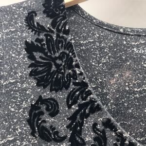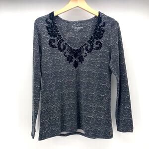Soft Surroundings Top Womens Small Black Gray White Velvet Smocked V Neck