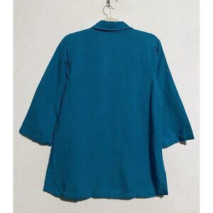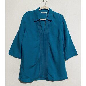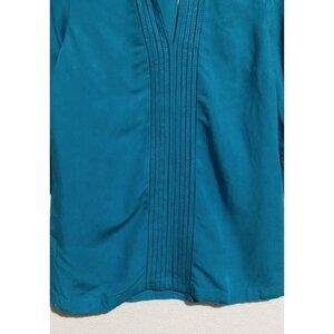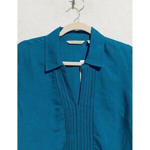Soft Surroundings Top Womens Small Teal Camilla Pullover Pleated Linen Boho