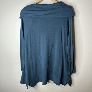 Soft Surroundings Top Womens XLP Blue Cowl Neck Lagenlook Bohemian Asymmetrical