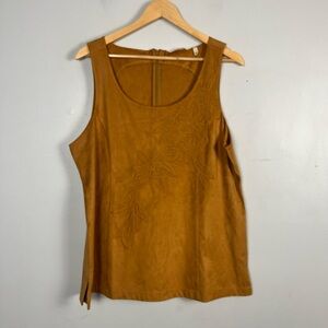 Soft Surroundings Top Womens embroidered Brown Constance Faux Suede size large
