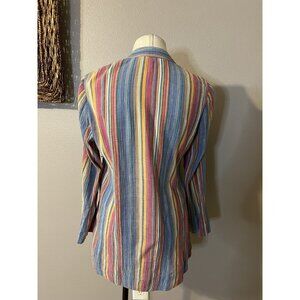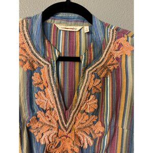Soft Surroundings Top XS Striped Embroidered Beaded Cotton Tunic Long Sleeve